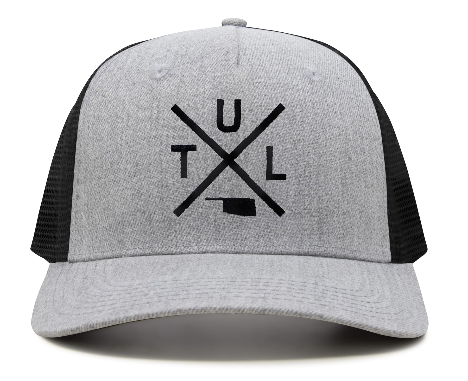 International Tie Hat for Men and Women, TUL Snapback Trucker Baseball Cap, Embroidered Cross Logo (TUL - Tulsa, Grey Black)