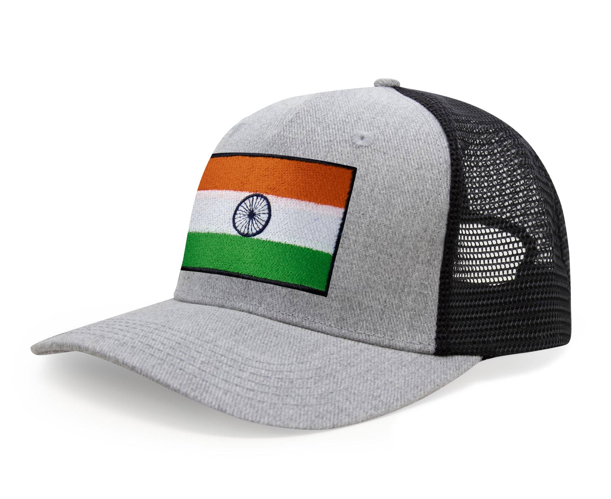 International Tie Indian Flag Hat for Men and Women - Adjustable India Snapback Trucker Baseball Cap (Grey Black)