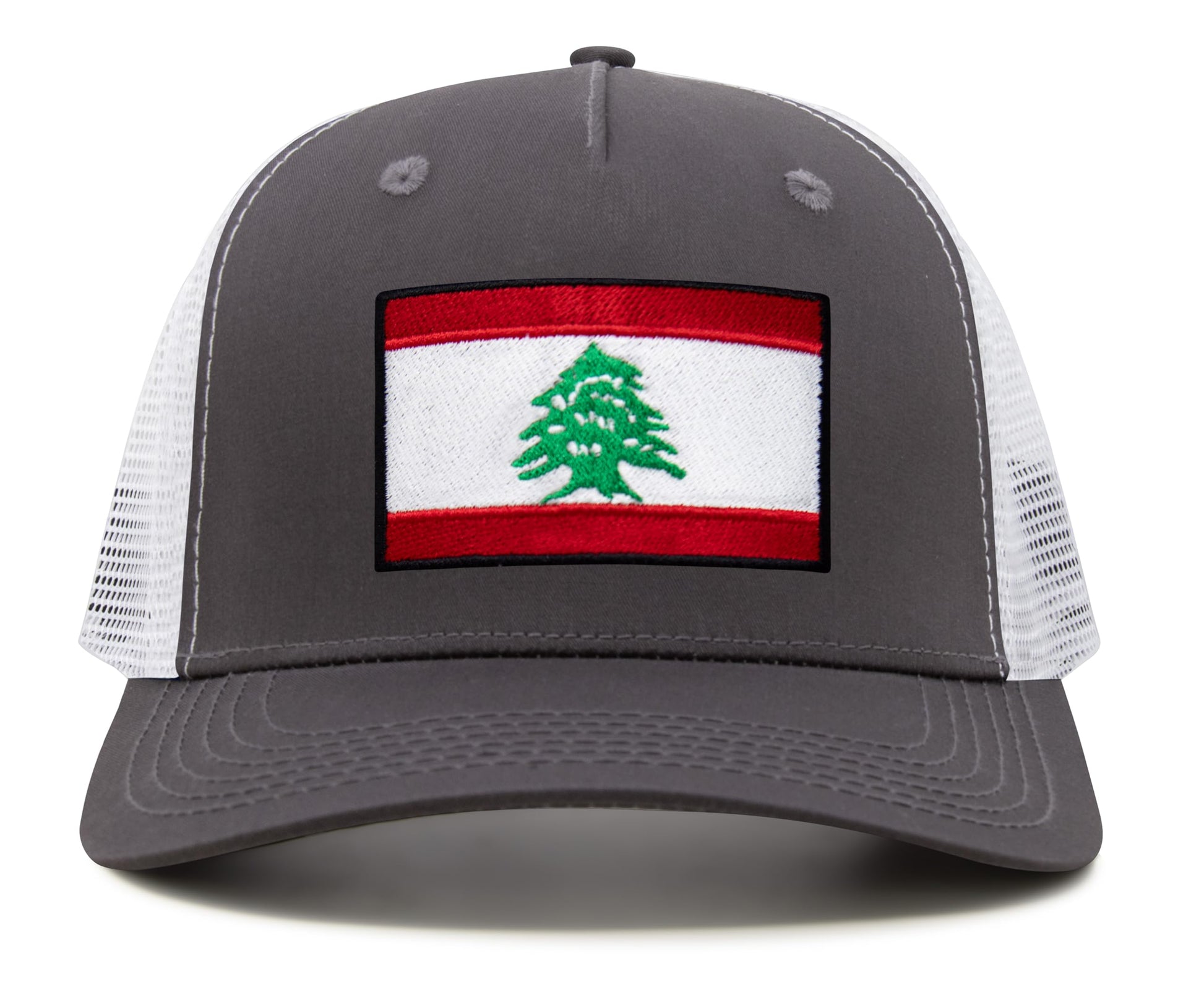 International Tie Lebanon Flag Hat for Men and Women - Adjustable Snapback Trucker Baseball Cap (Grey White)