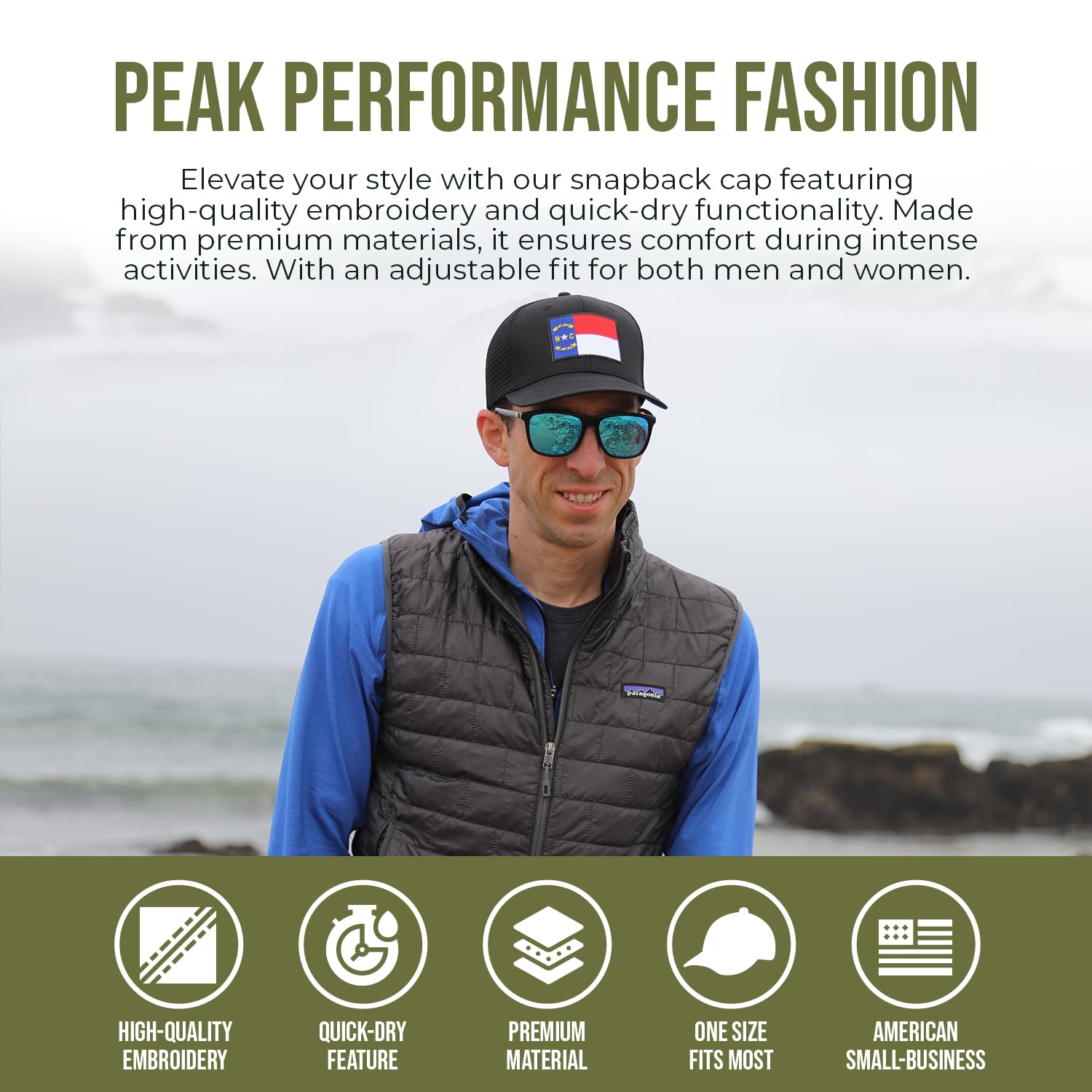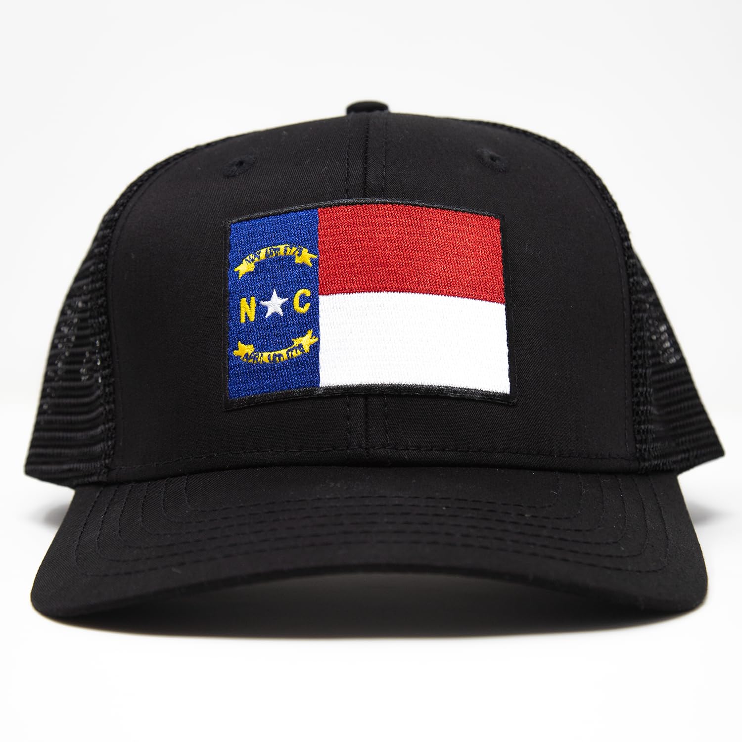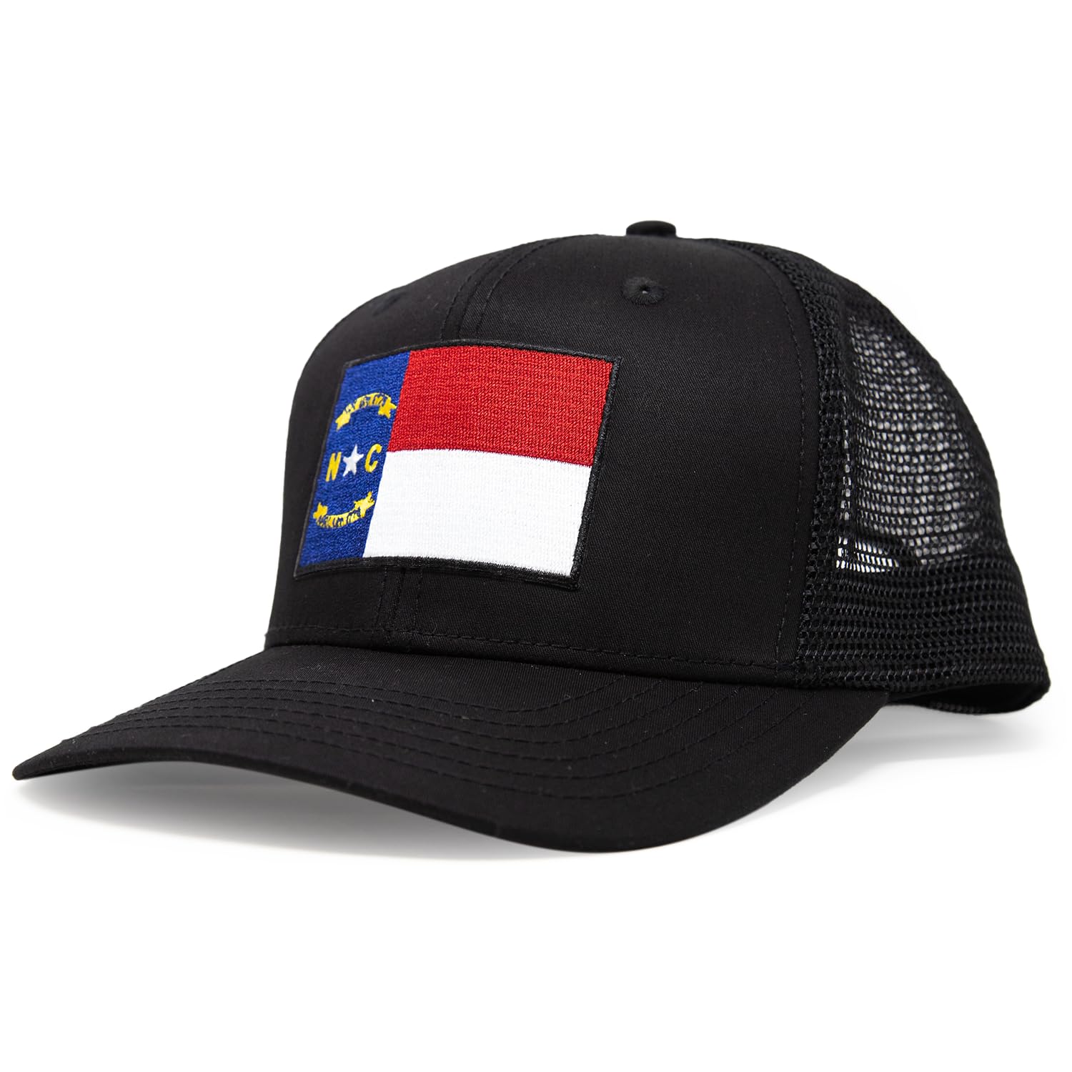 International Tie Premium Flag Themed North Carolina Hat for Men and Women – Adjustable One Size Snapback Cap - Embroidered Patch - Mesh Back (All Black)