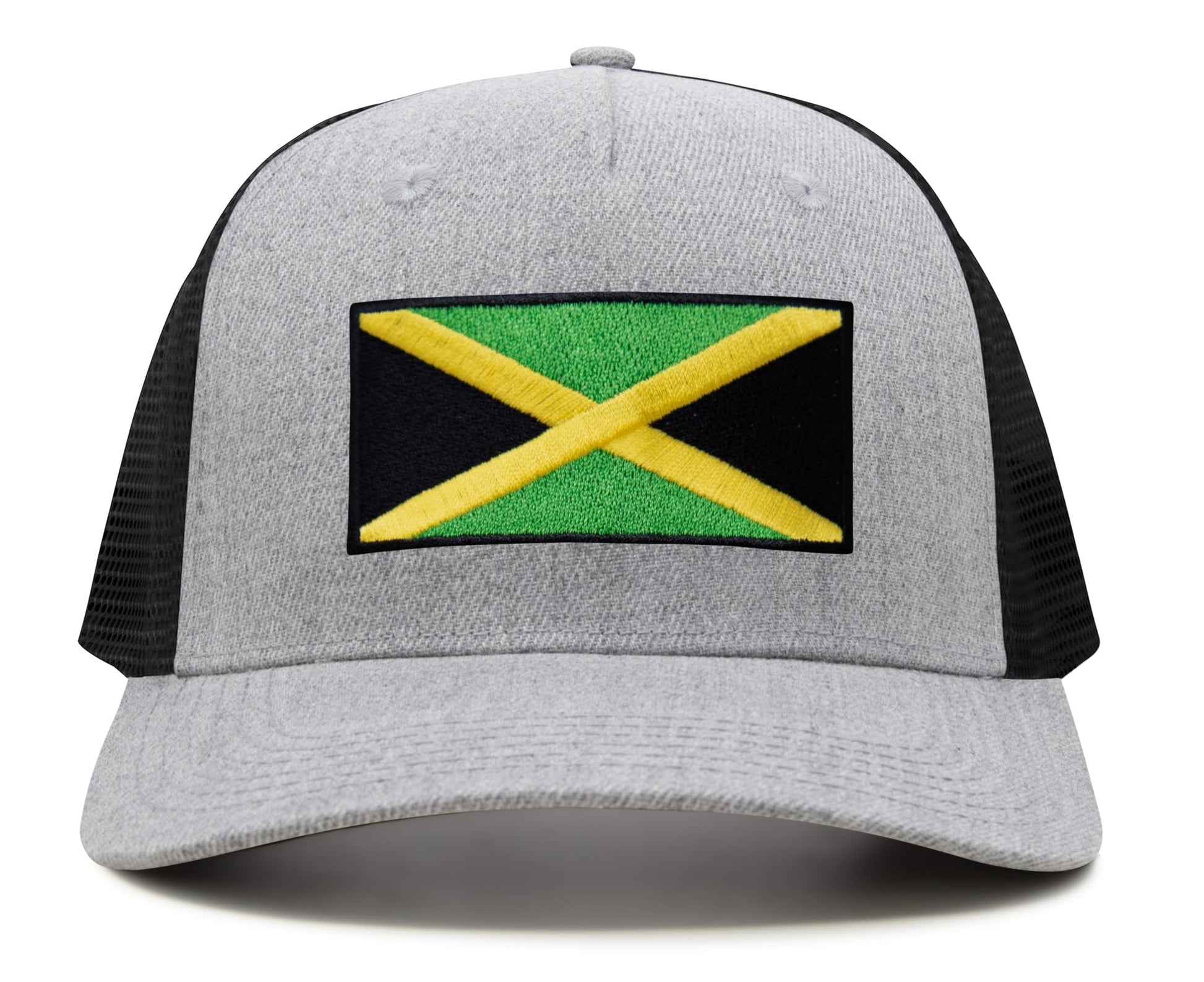 International Tie Premium Jamaica - Flag Patch Hat for Men and Women - Snapback Trucker Baseball Cap (Grey Black)