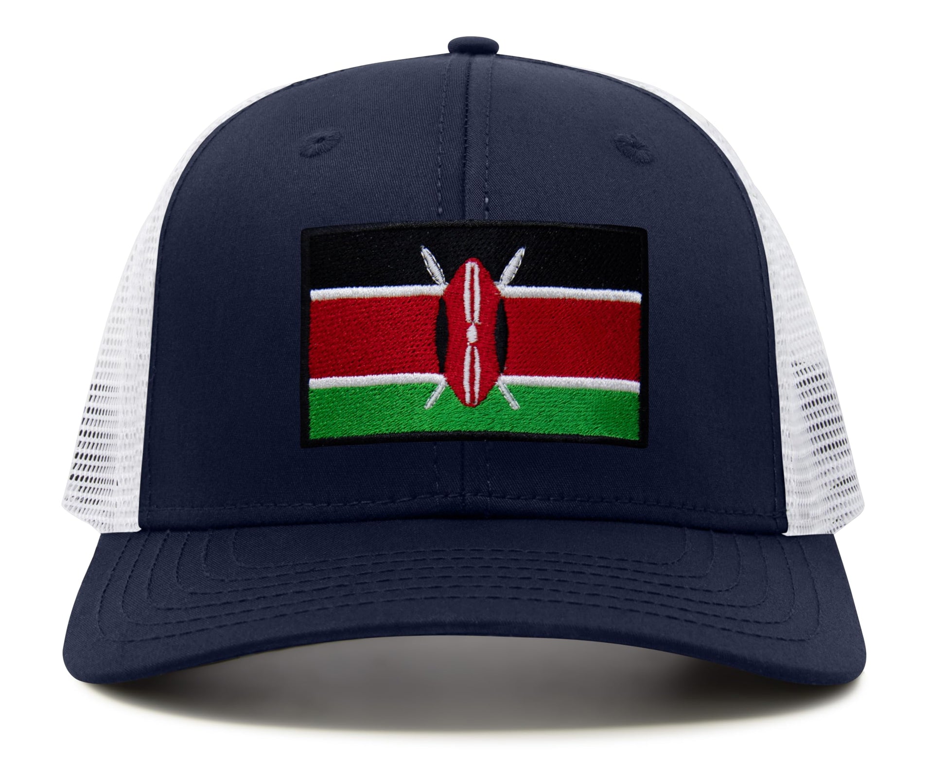 International Tie Premium Kenya - Flag Patch Hat for Men and Women - Snapback Trucker Baseball Cap (Navy White)