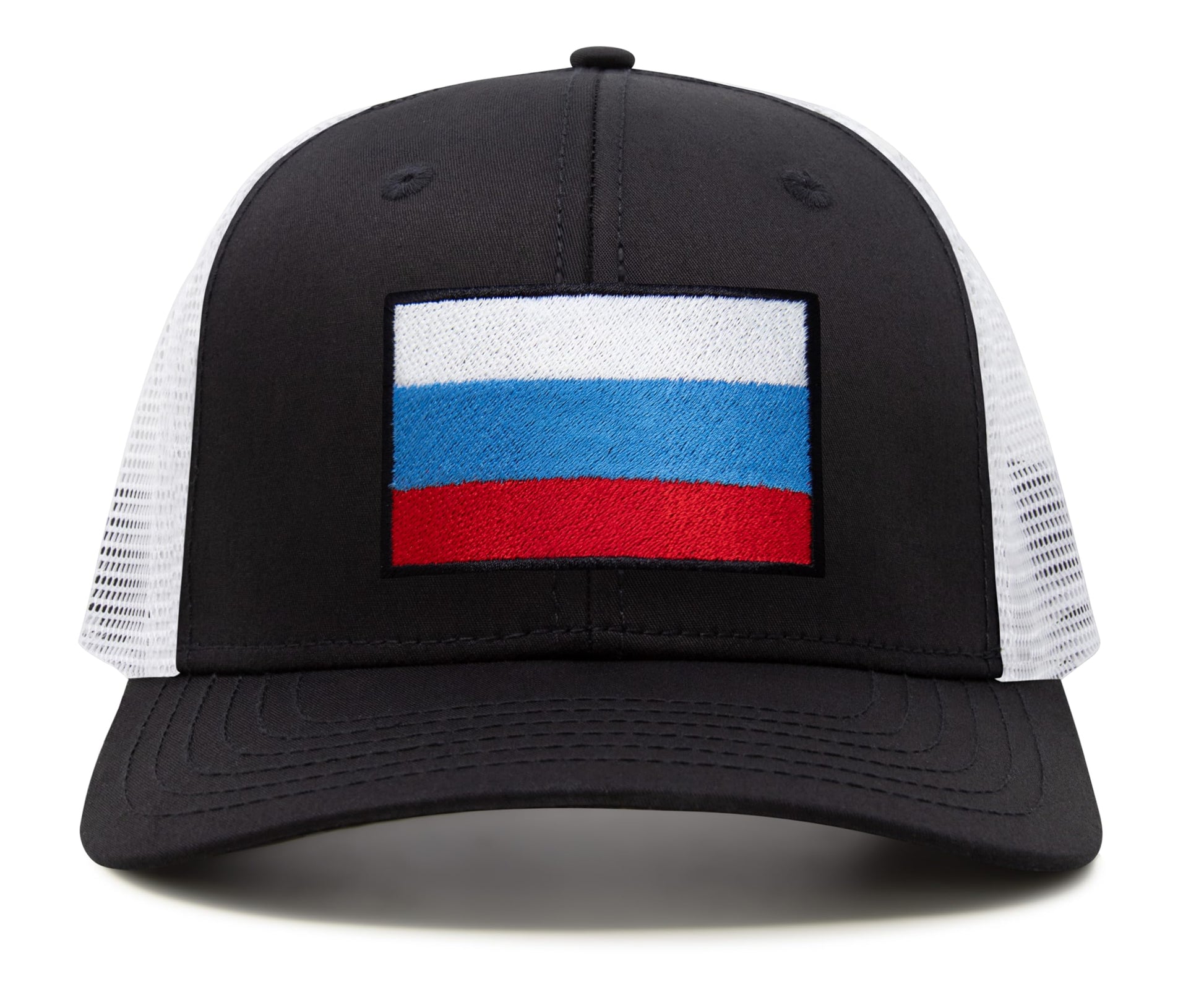 International Tie Russian Flag Hat for Men and Women - Adjustable Snapback Trucker Baseball Cap (Black White)