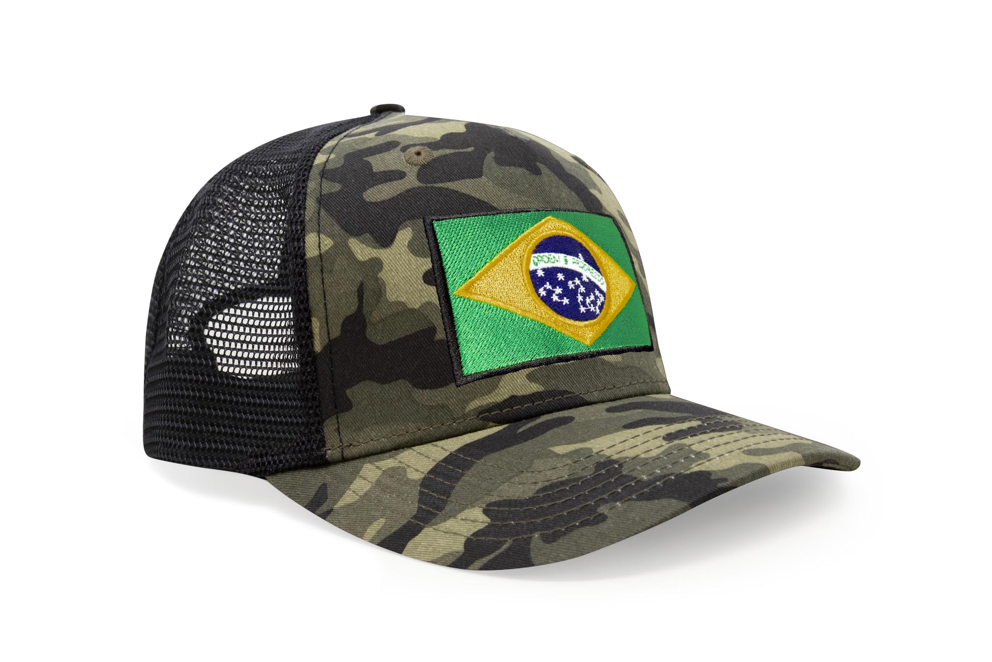 International Tie Country Hat for Men and Women, Adjustable Snapback Trucker Baseball Cap with Embroidered Patch (Brazil, Camouflage)