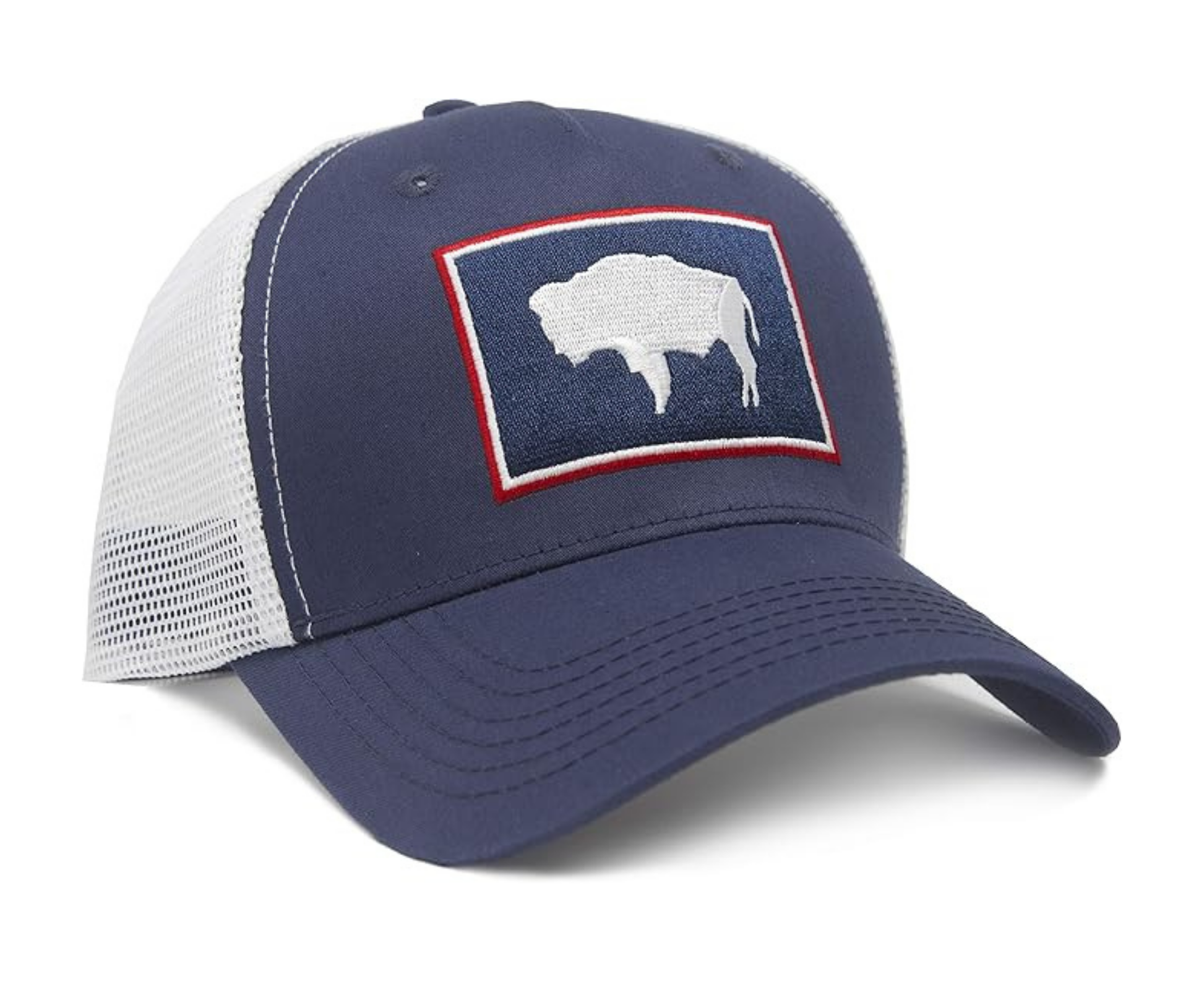 International Tie State Hat for Men and Women, Adjustable Snapback Trucker Baseball Cap with Embroidered Patch (Wyoming, Navy White)