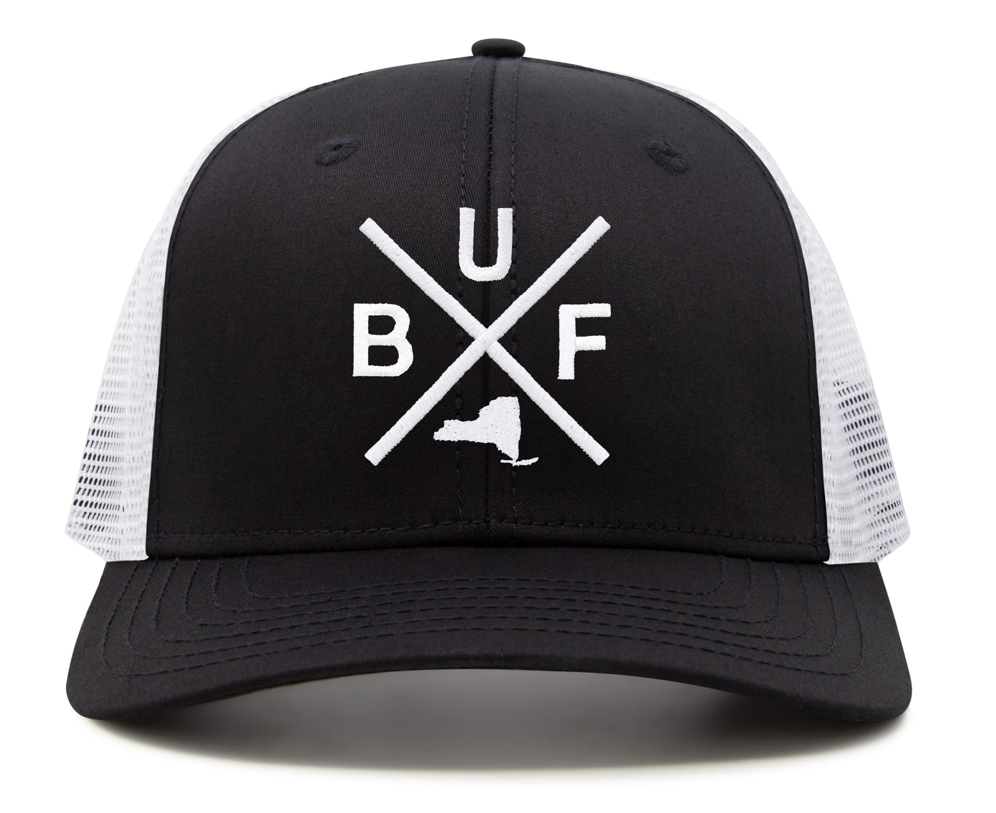 International Tie Texas Hat for Men and Women, BUF Snapback Trucker Baseball Cap, Embroidered Cross Logo (Black White)