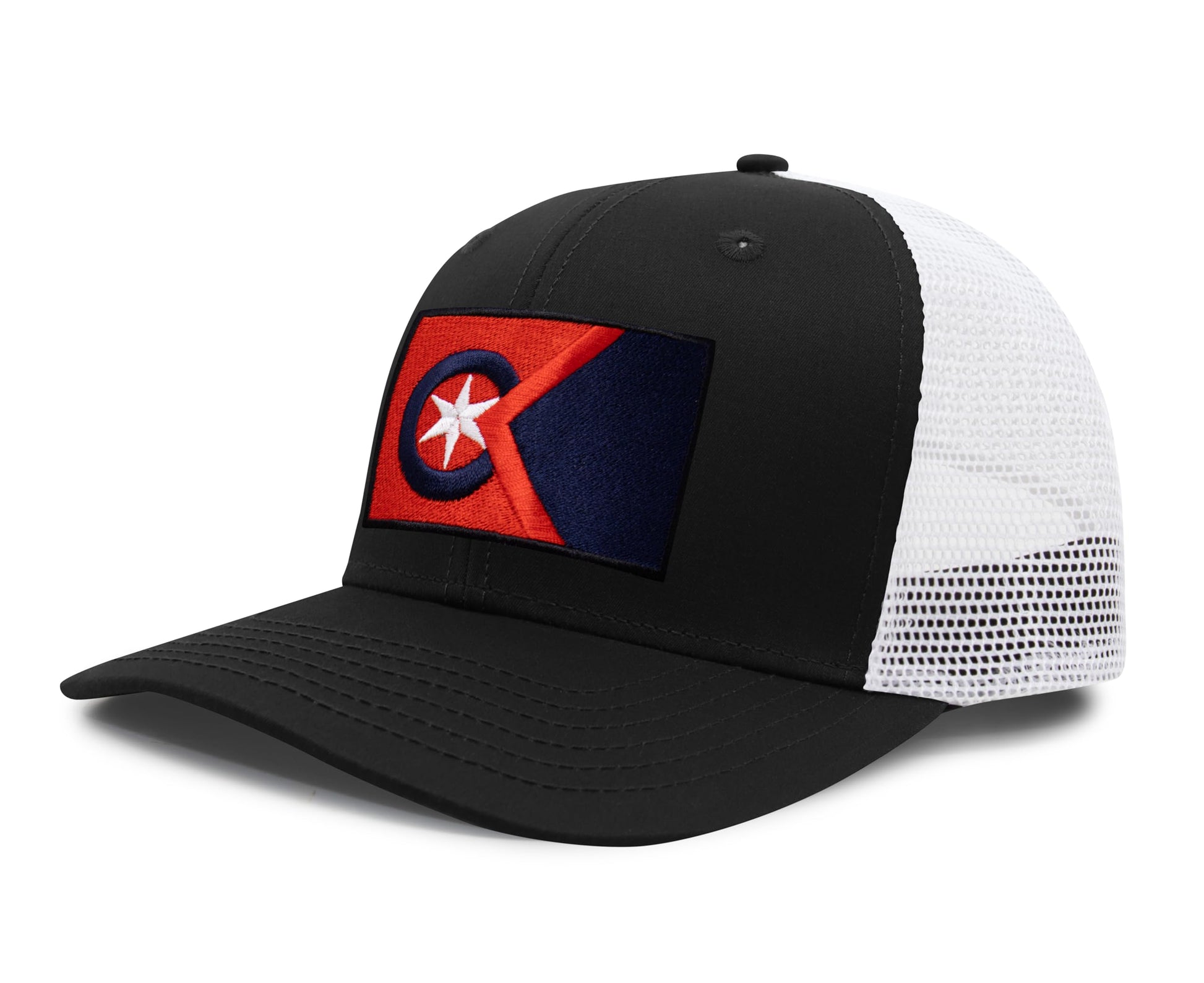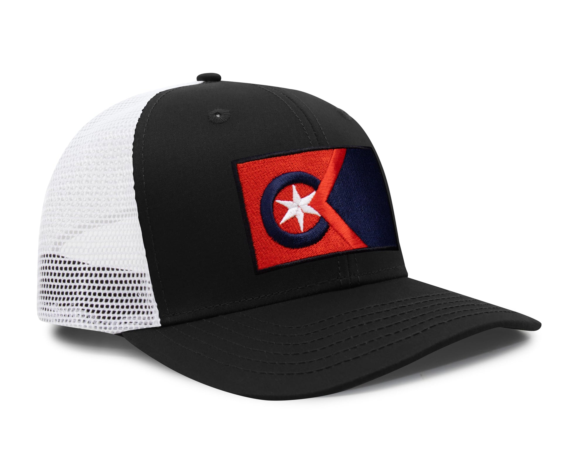 International Tie Cleveland Flag Hat for Men and Women - Adjustable Snapback Trucker Baseball Cap (Black White)