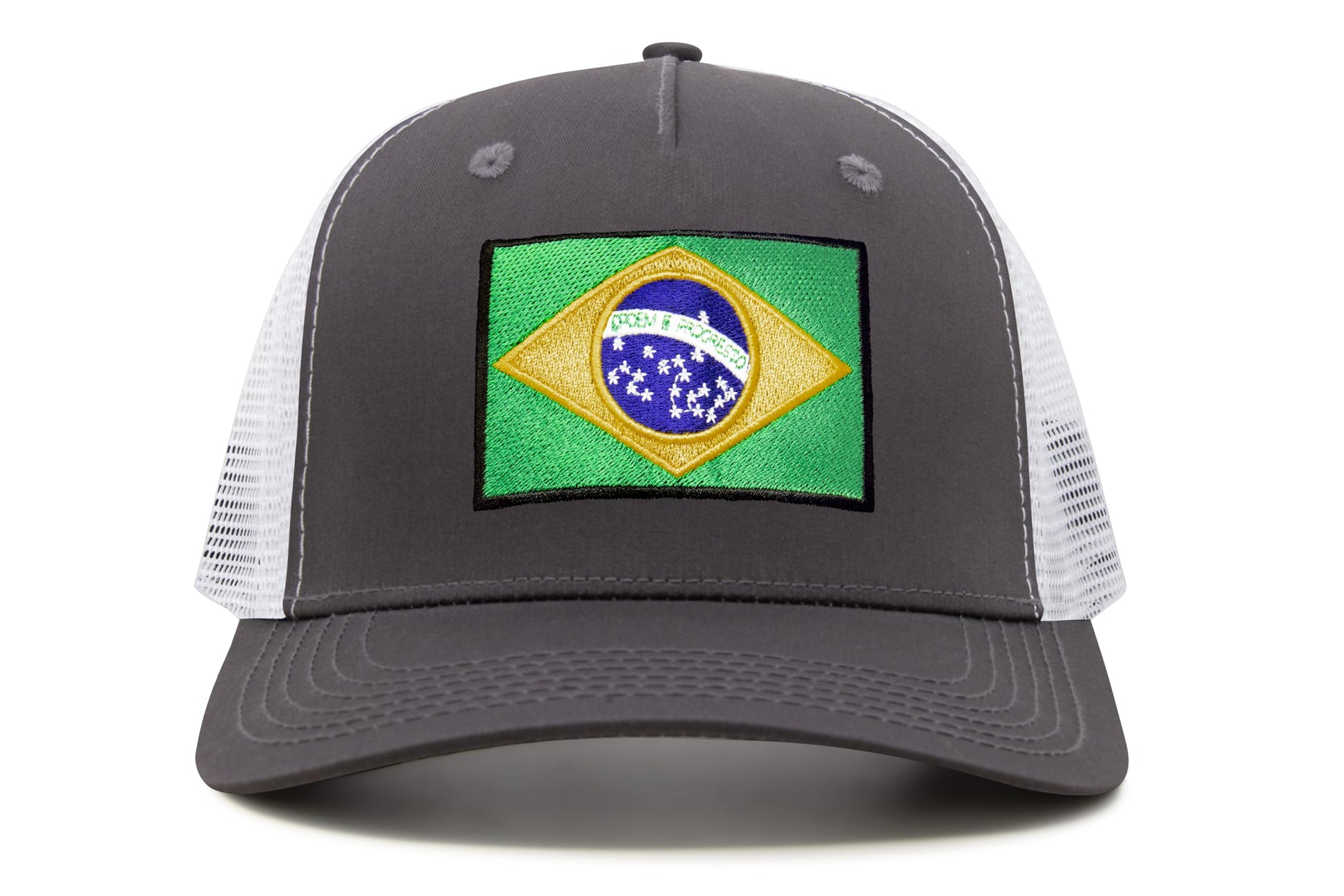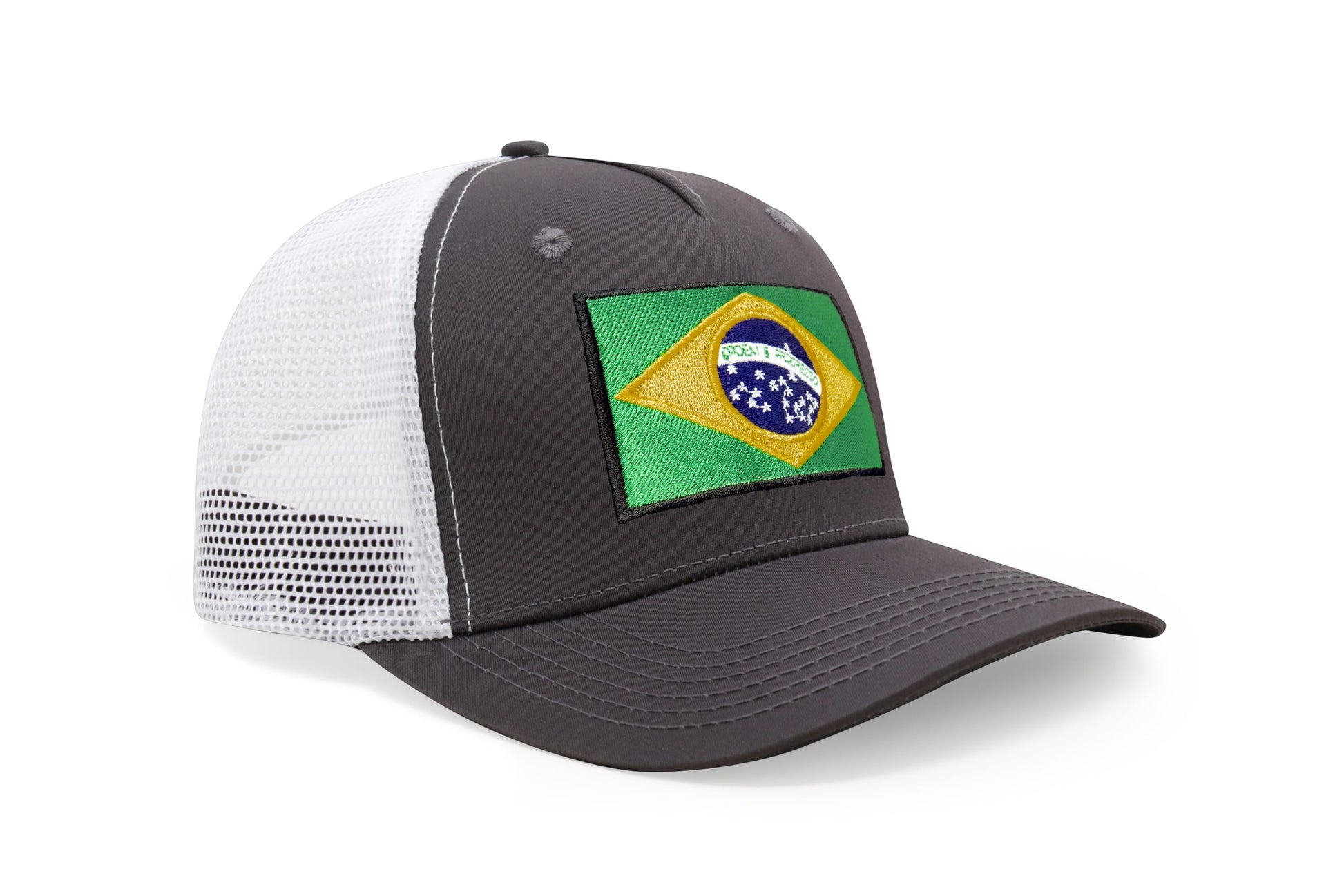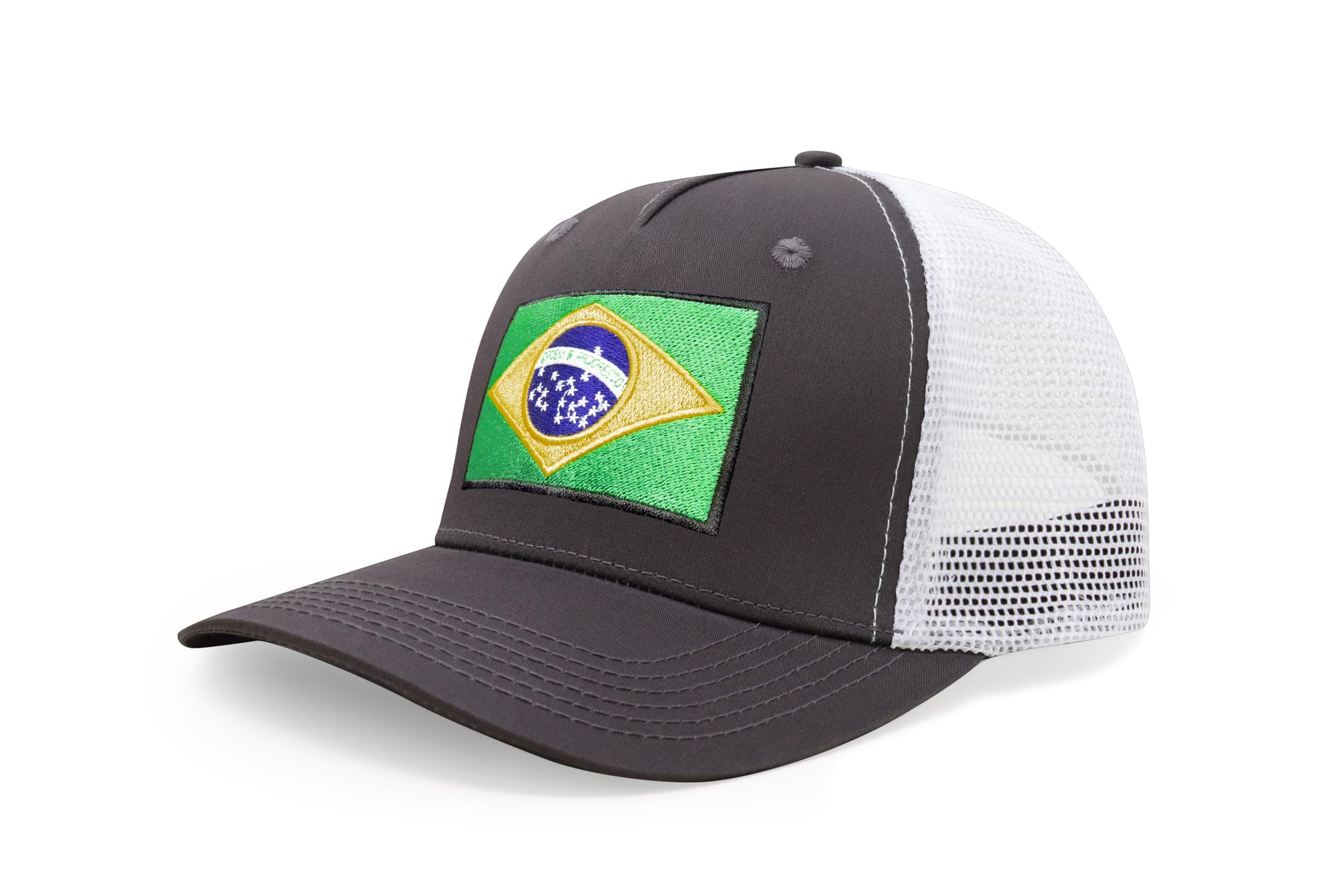 International Tie Country Hat for Men and Women, Adjustable Snapback Trucker Baseball Cap with Embroidered Patch (Brazil, Grey White)