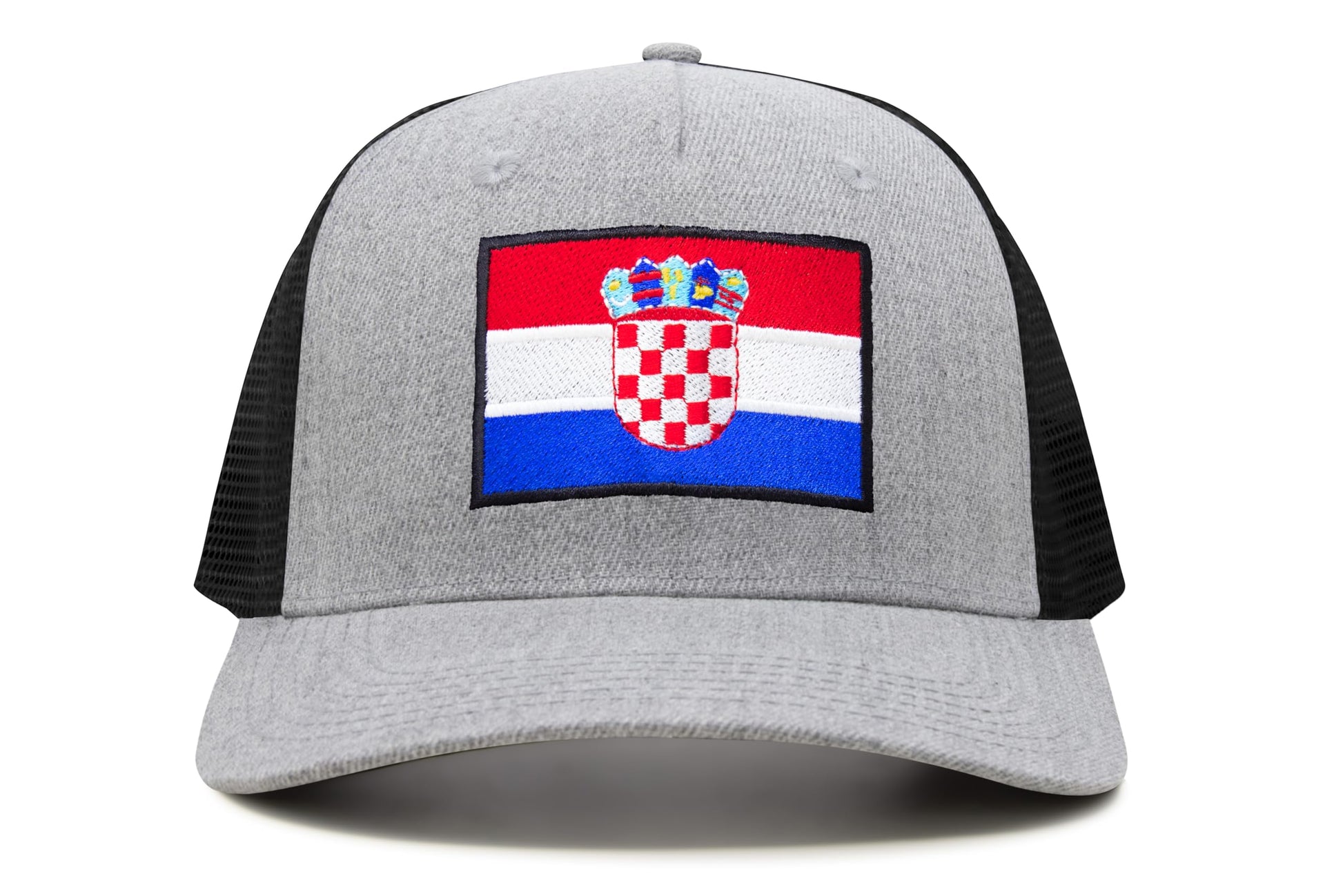 International Tie Country Hat for Men and Women, Adjustable Snapback Trucker Baseball Cap with Embroidered Patch (Croatia, Grey Black)