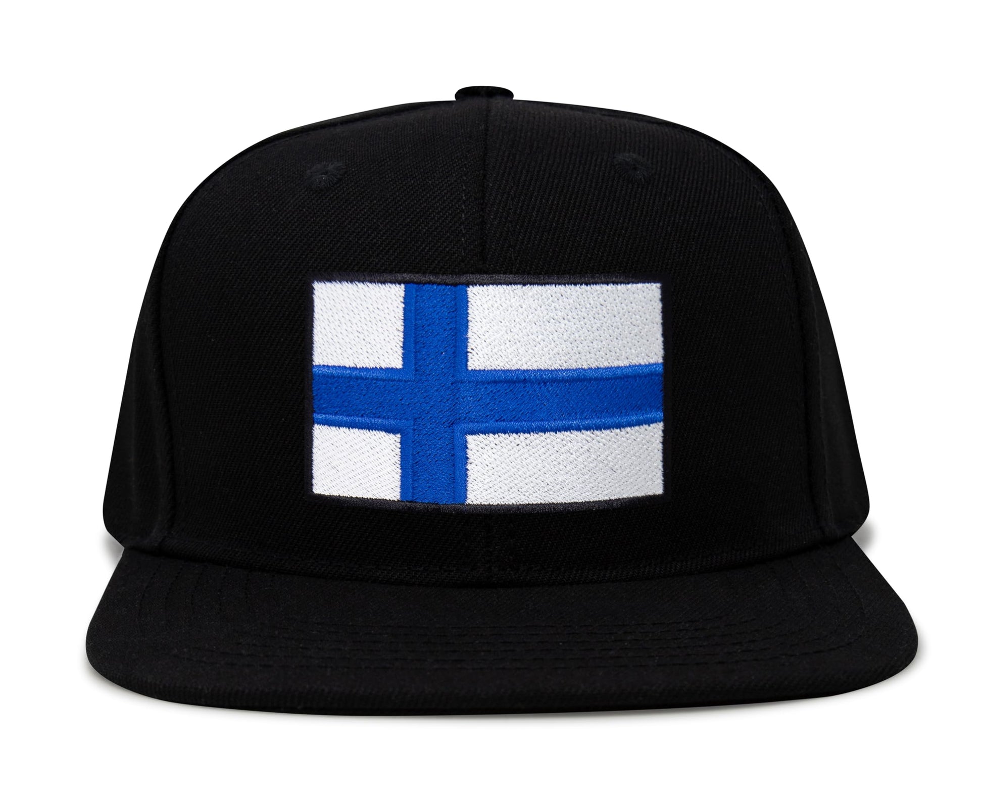 International Tie Finland Flag Hat for Men and Women - Adjustable Snapback Trucker Baseball Cap (Black Flatbill)