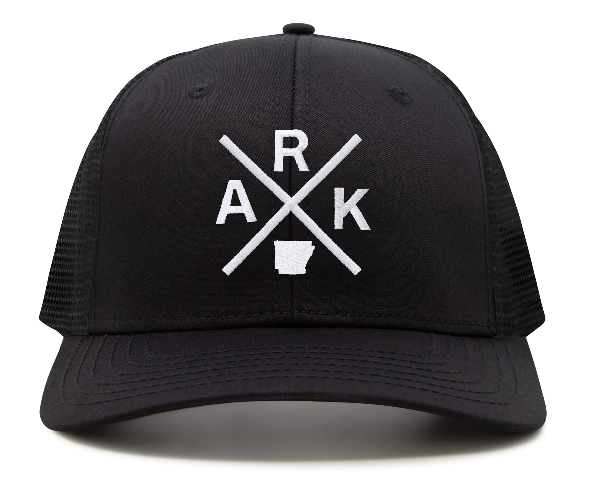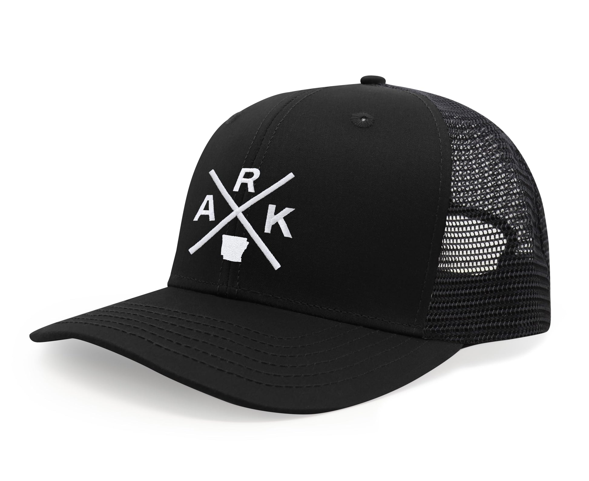 International Tie Hat for Men and Women, Adjustable Snapback Trucker Baseball Cap, Embroidered Cross Logo (ARK - Arkansas, All Black)