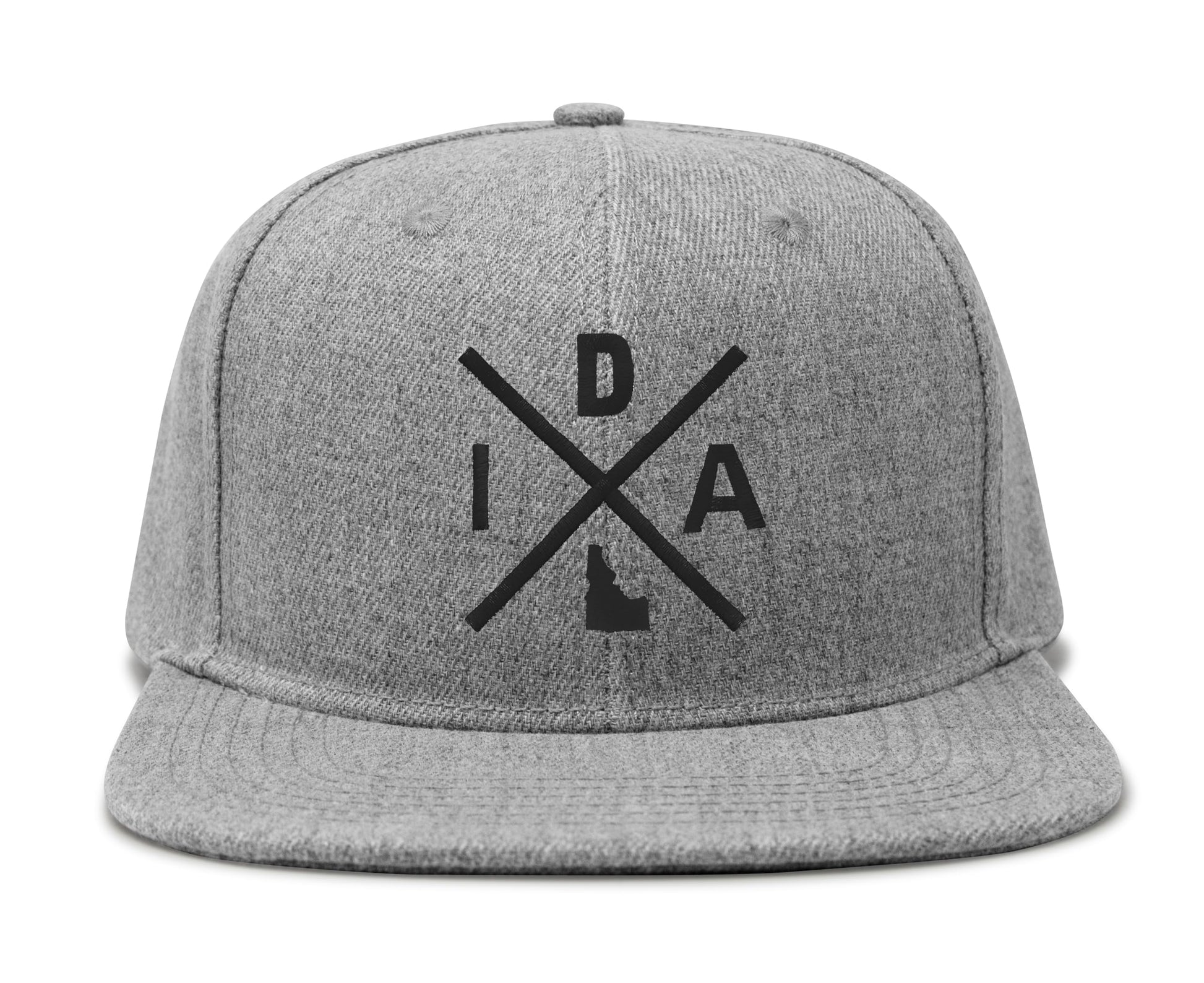 International Tie Hat for Men and Women, Adjustable Snapback Trucker Baseball Cap, Embroidered Cross Logo (IDA - Idaho, Grey Flatbill)