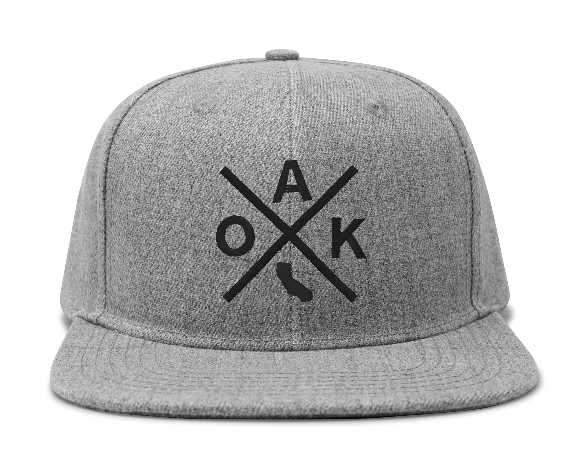 International Tie Hat for Men and Women, Adjustable Snapback Trucker Baseball Cap, Embroidered Cross Logo (OAK - Oakland, Grey Flatbill)