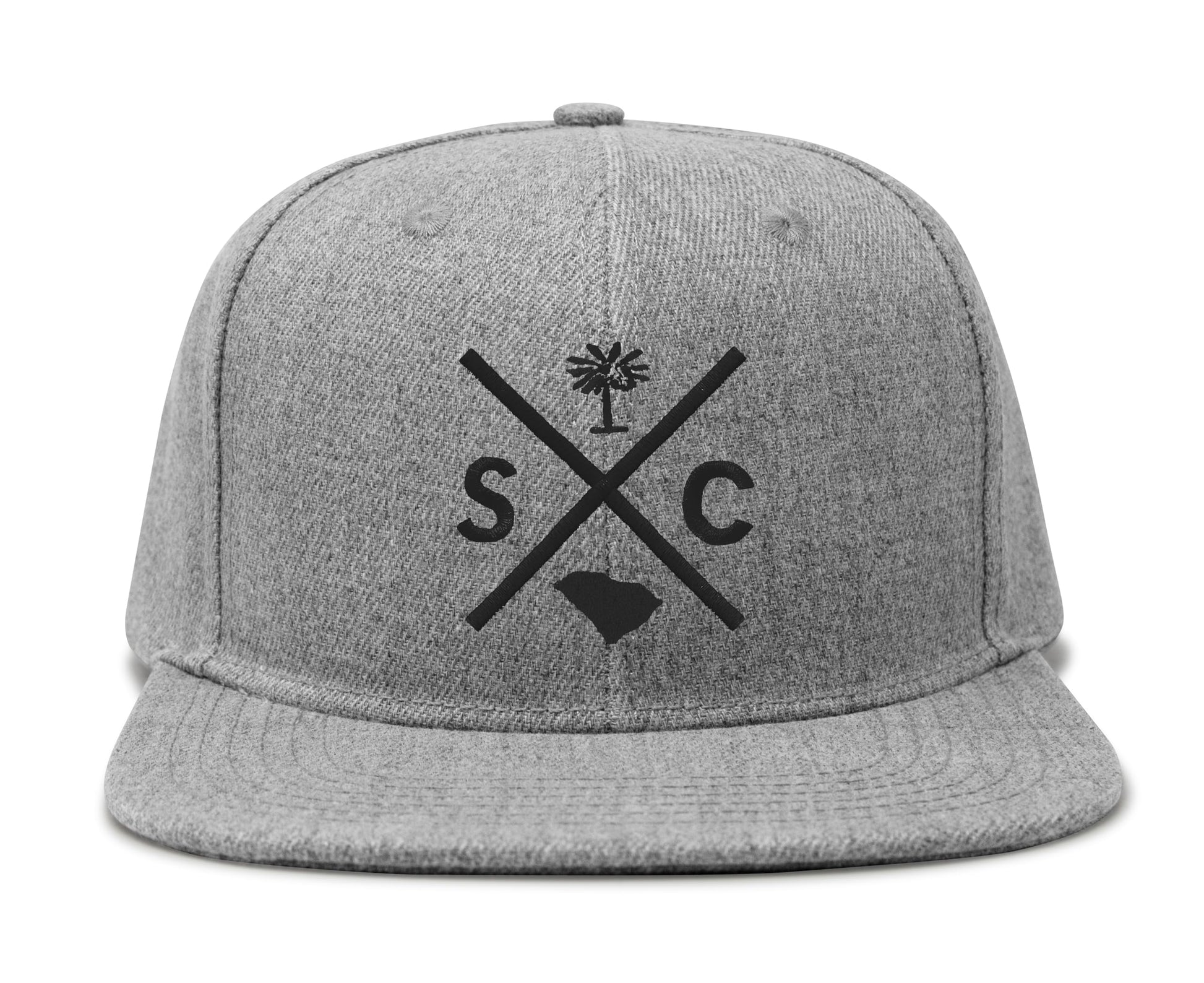 International Tie Hat for Men and Women, Adjustable Snapback Trucker Baseball Cap, Embroidered Cross Logo (SC - South Carolina, Grey Flatbill)