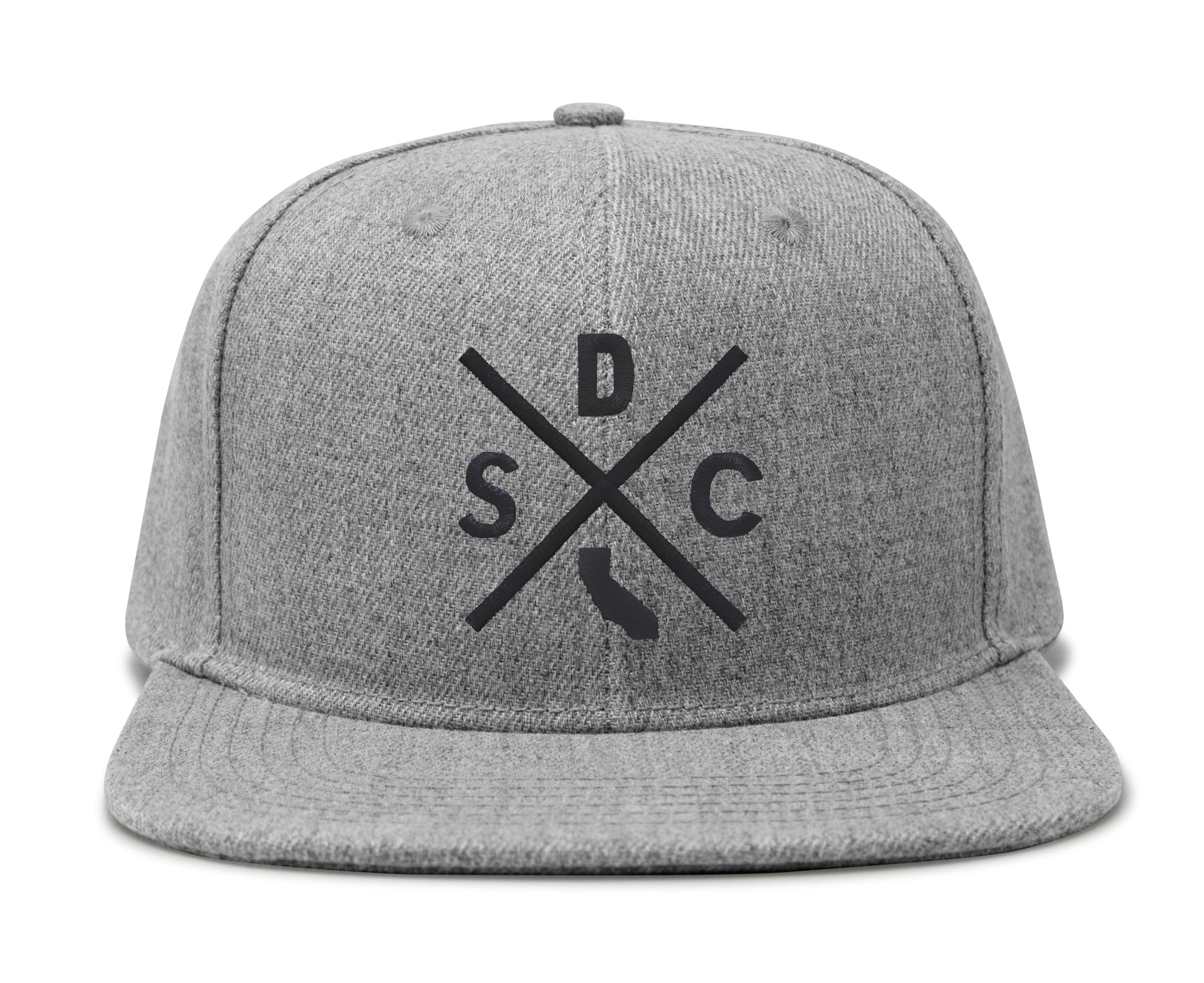 International Tie Hat for Men and Women, Adjustable Snapback Trucker Baseball Cap, Embroidered Cross Logo (SDC - San Diego, Grey Flatbill)