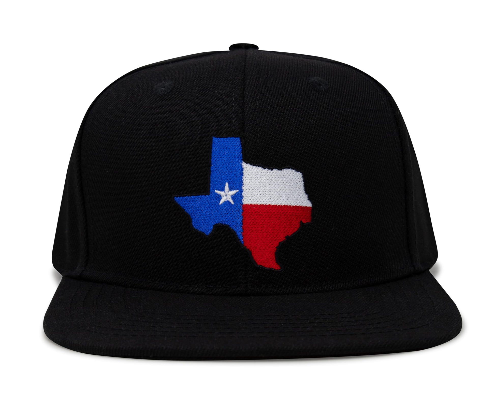 International Tie Hat for Men and Women, Adjustable Snapback Trucker Baseball Cap with Embroidered Patch (Texas, Black Flatbill)