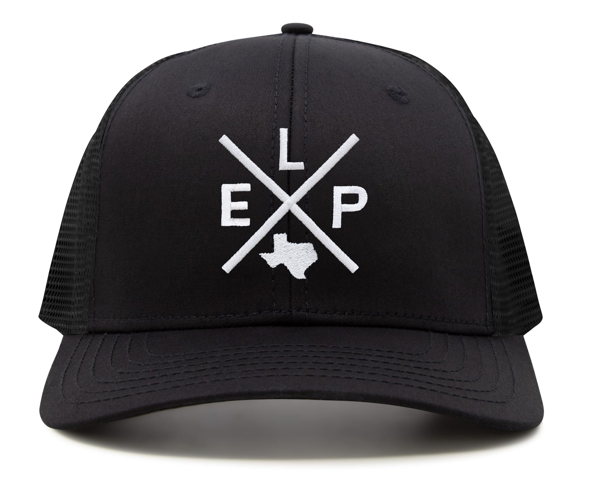 International Tie Hat for Men and Women, ELP Snapback Trucker Baseball Cap, Embroidered Cross Logo (ELP - El Paso, All Black)