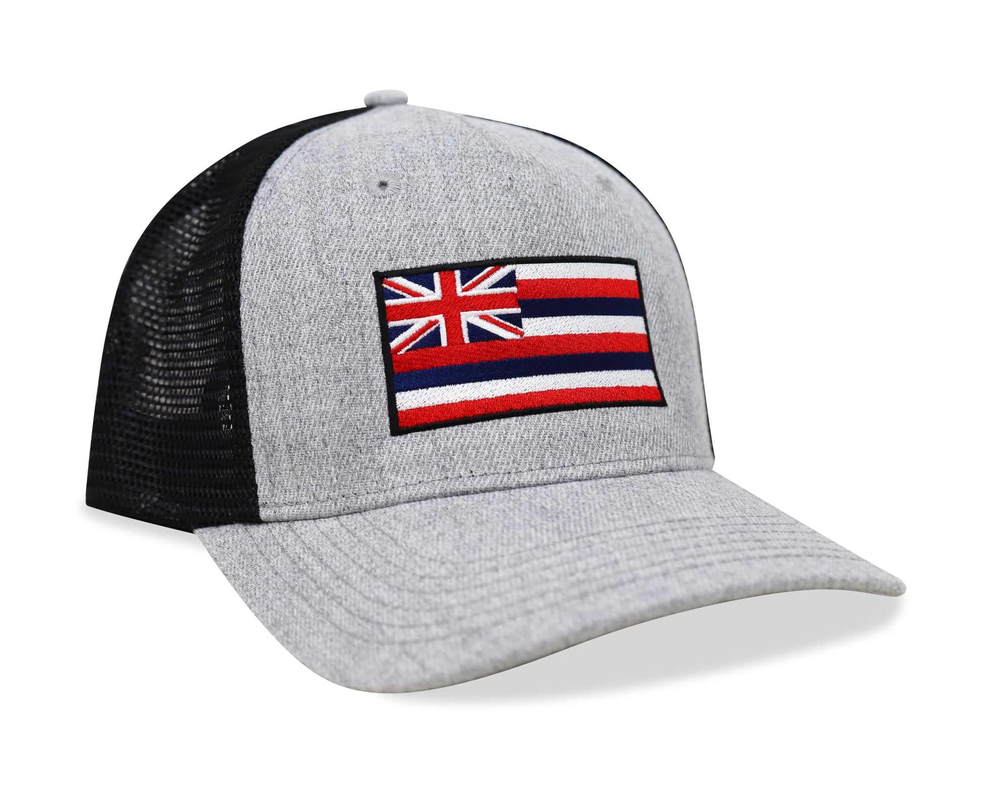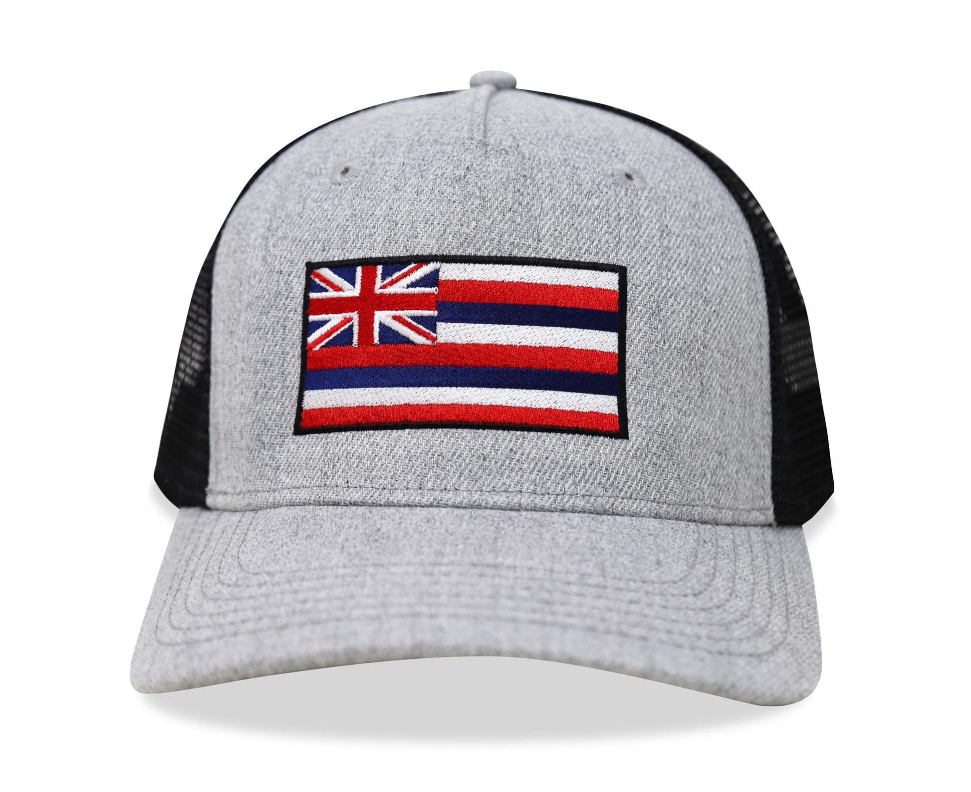 International Tie Hawaiian Flag Trucker Hat for Men & Women - Adjustable Snapback Baseball Cap with Embroidered Patch (Grey/Black)