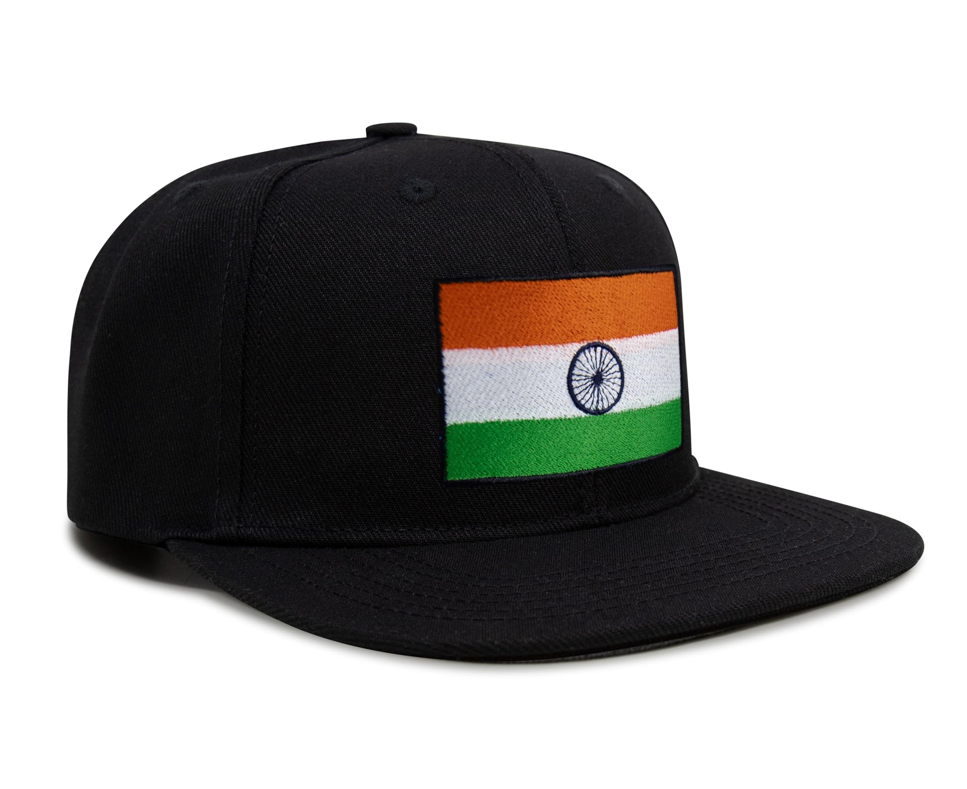International Tie Indian Flag Hat for Men and Women - Adjustable India Snapback Trucker Baseball Cap (Black Flatbill)