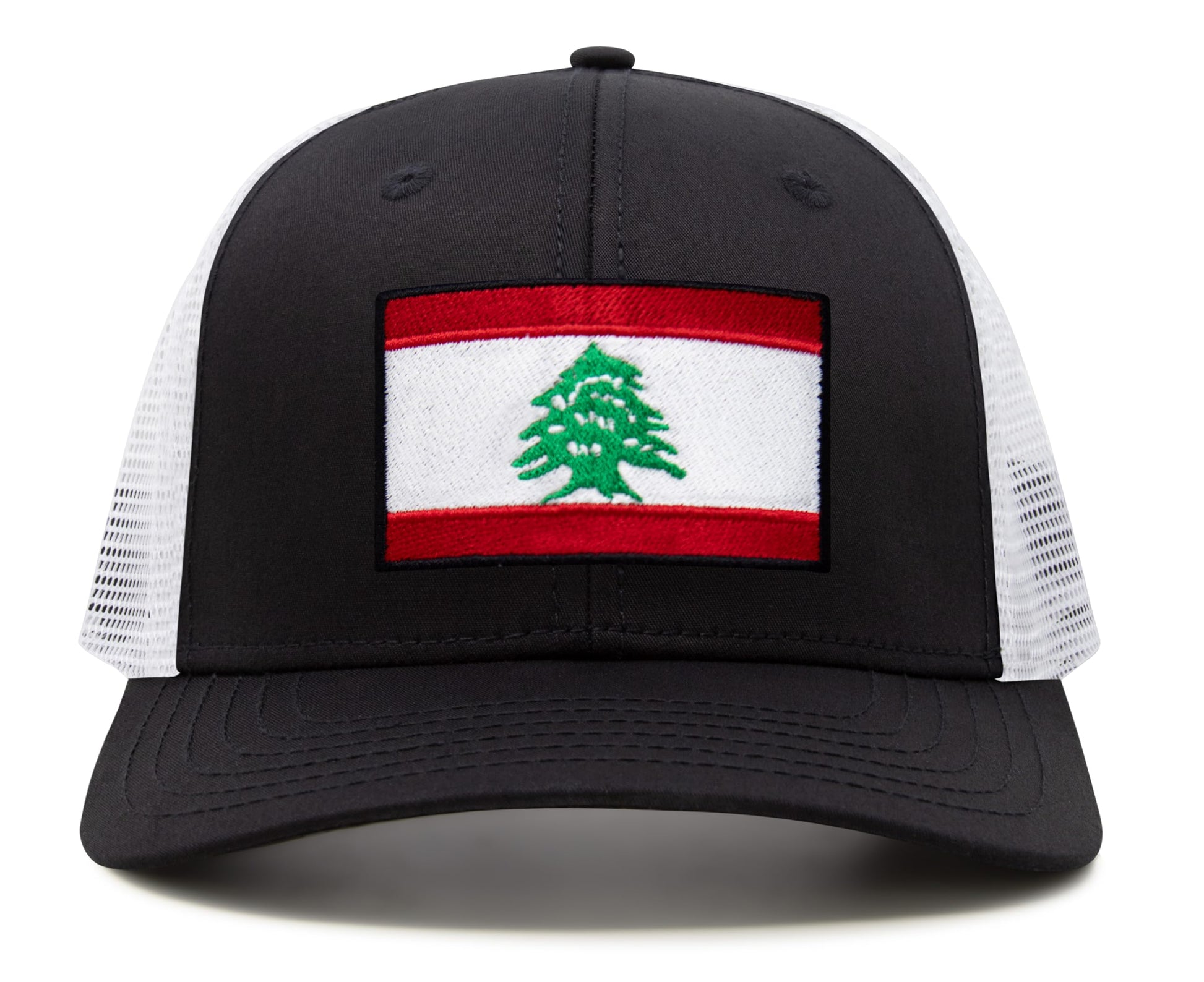 International Tie Lebanon Flag Hat for Men and Women - Adjustable Snapback Trucker Baseball Cap (Black White)