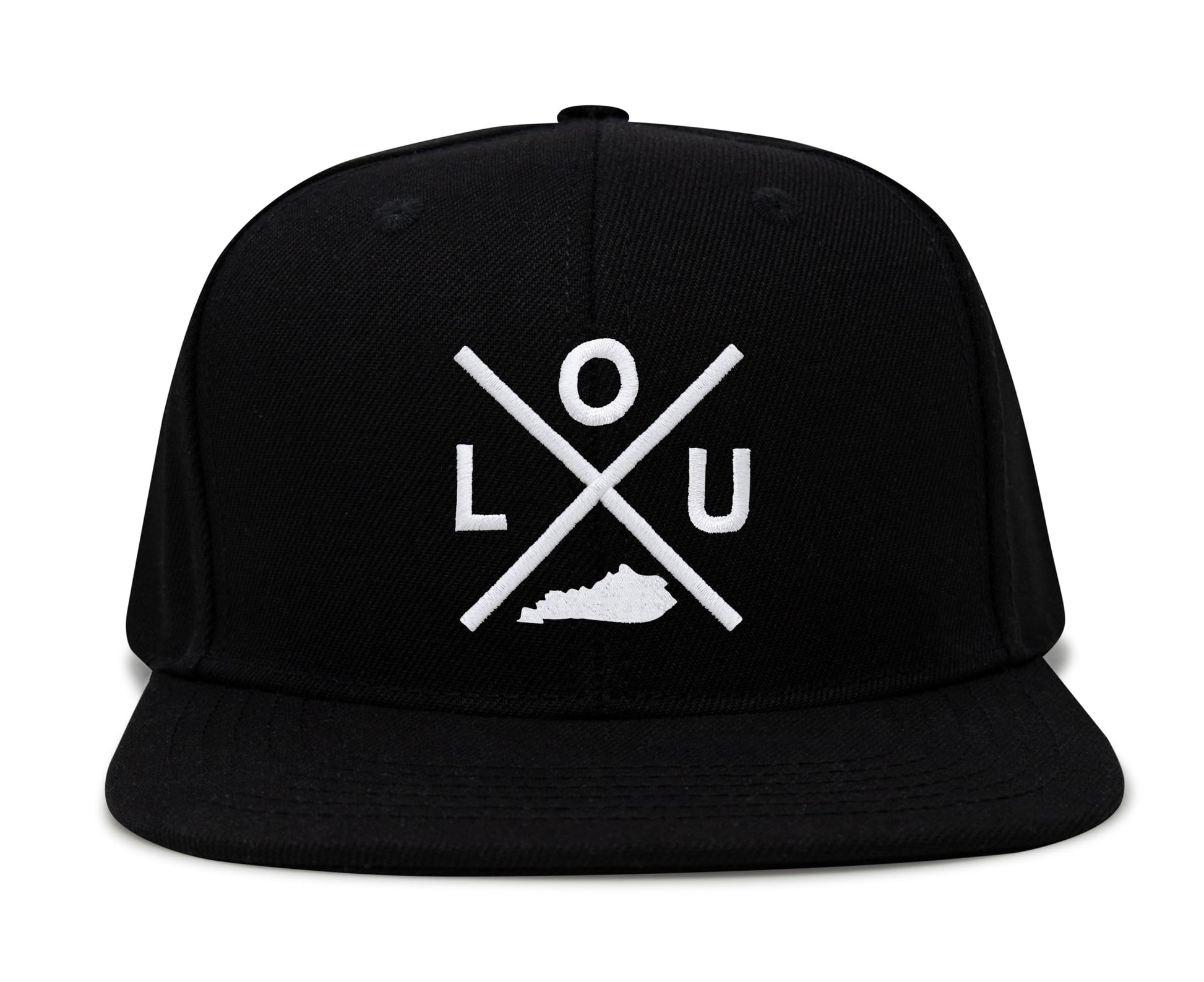 International Tie LOU (Louisville) - Hat for Men and Women - Snapback Trucker Baseball Cap (Black Flatbill)