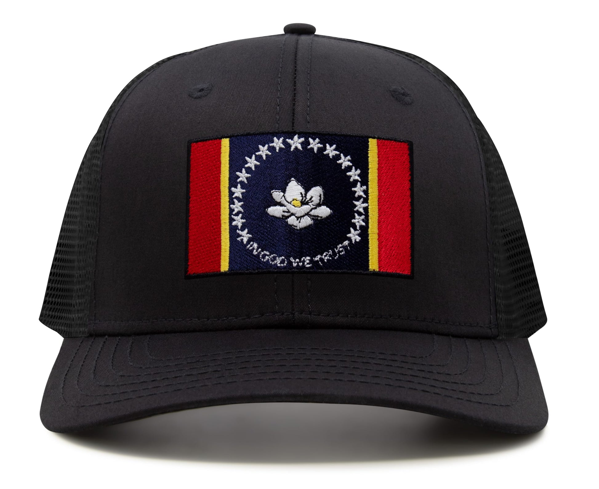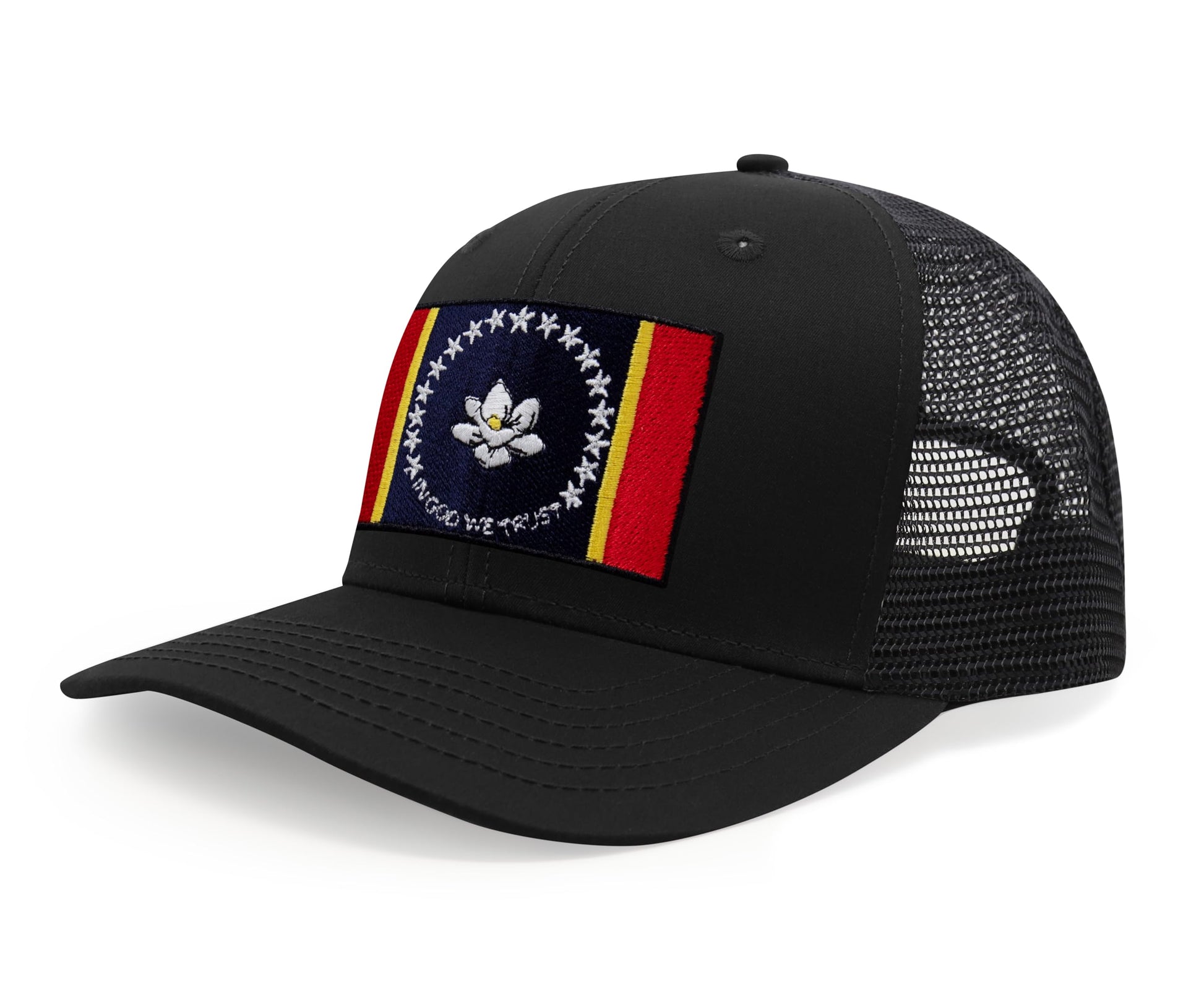 International Tie Mississippi Flag Hat for Men and Women – Snapback Trucker Baseball Cap (All Black)
