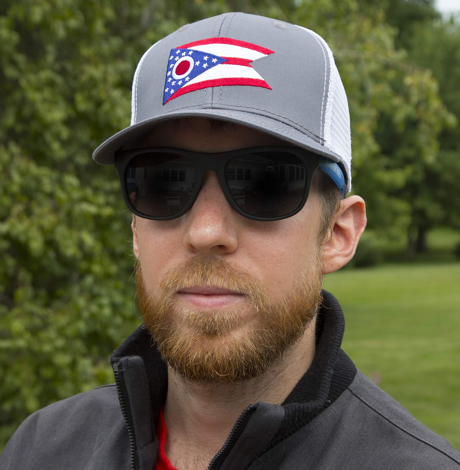International Tie Ohio State Flag Hat for Men and Women - Snapback Trucker Baseball Cap (Grey White)