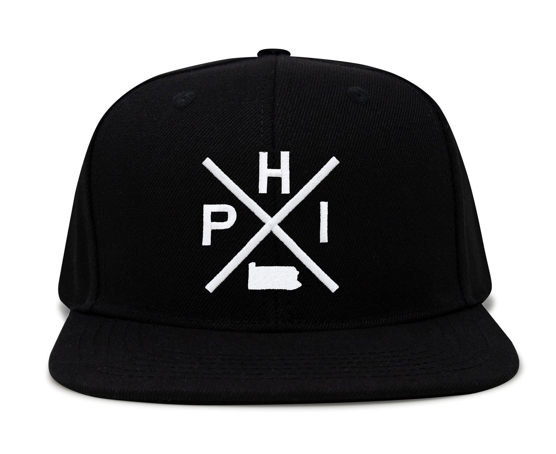 International Tie Philadelphia Hat for Men and Women, PHI Snapback Trucker Baseball Cap, Embroidered Cross Logo (Black Flatbill)