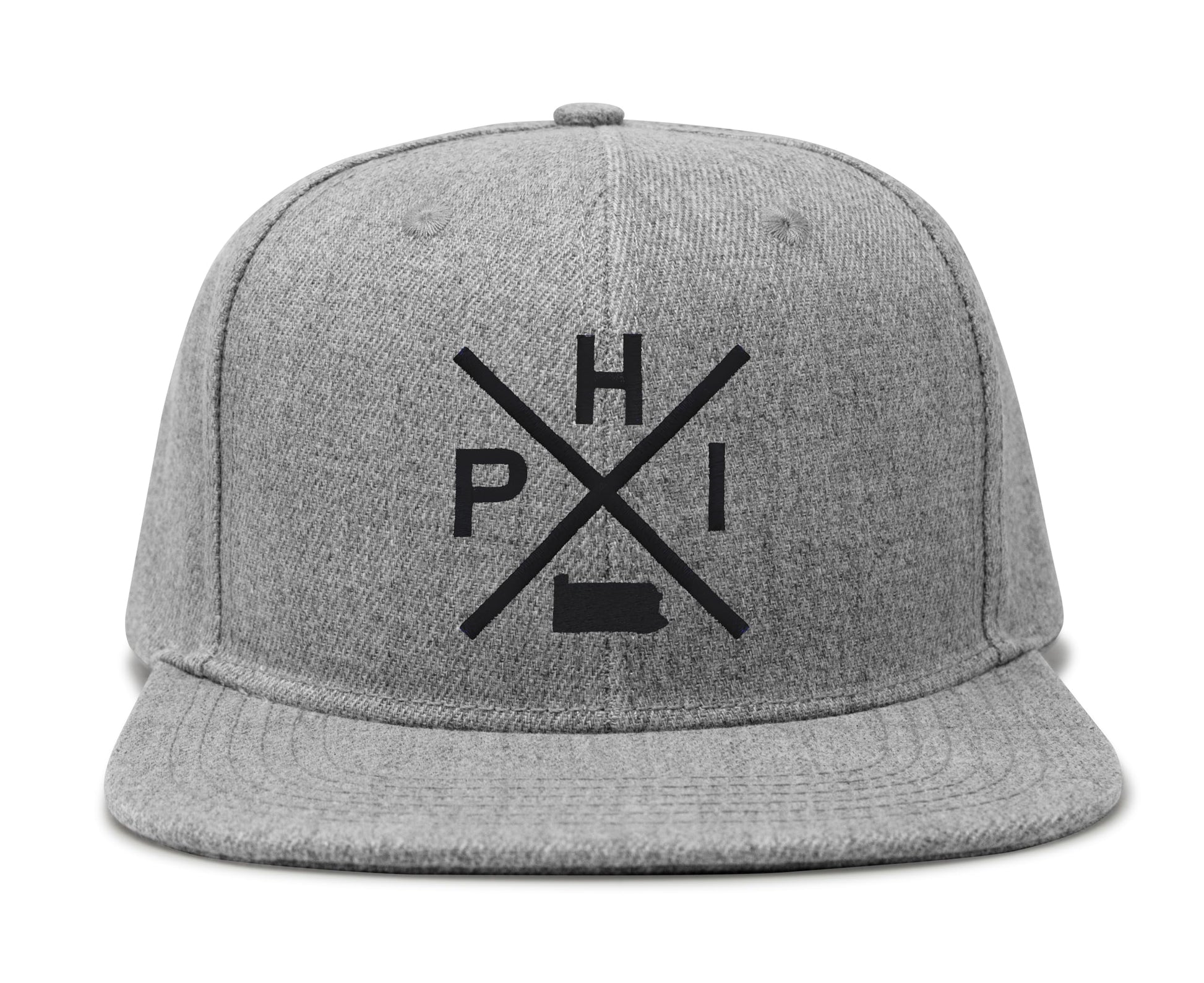 International Tie Philadelphia Hat for Men and Women, PHI Snapback Trucker Baseball Cap, Embroidered Cross Logo (Grey Flatbill)