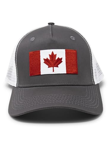 Canada Flag Trucker Baseball Snapback Hat (Grey White) - International Tie