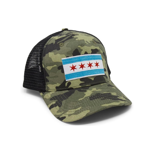 Chicago Flag Trucker Baseball Snapback Hat (Camouflage) - International Tie