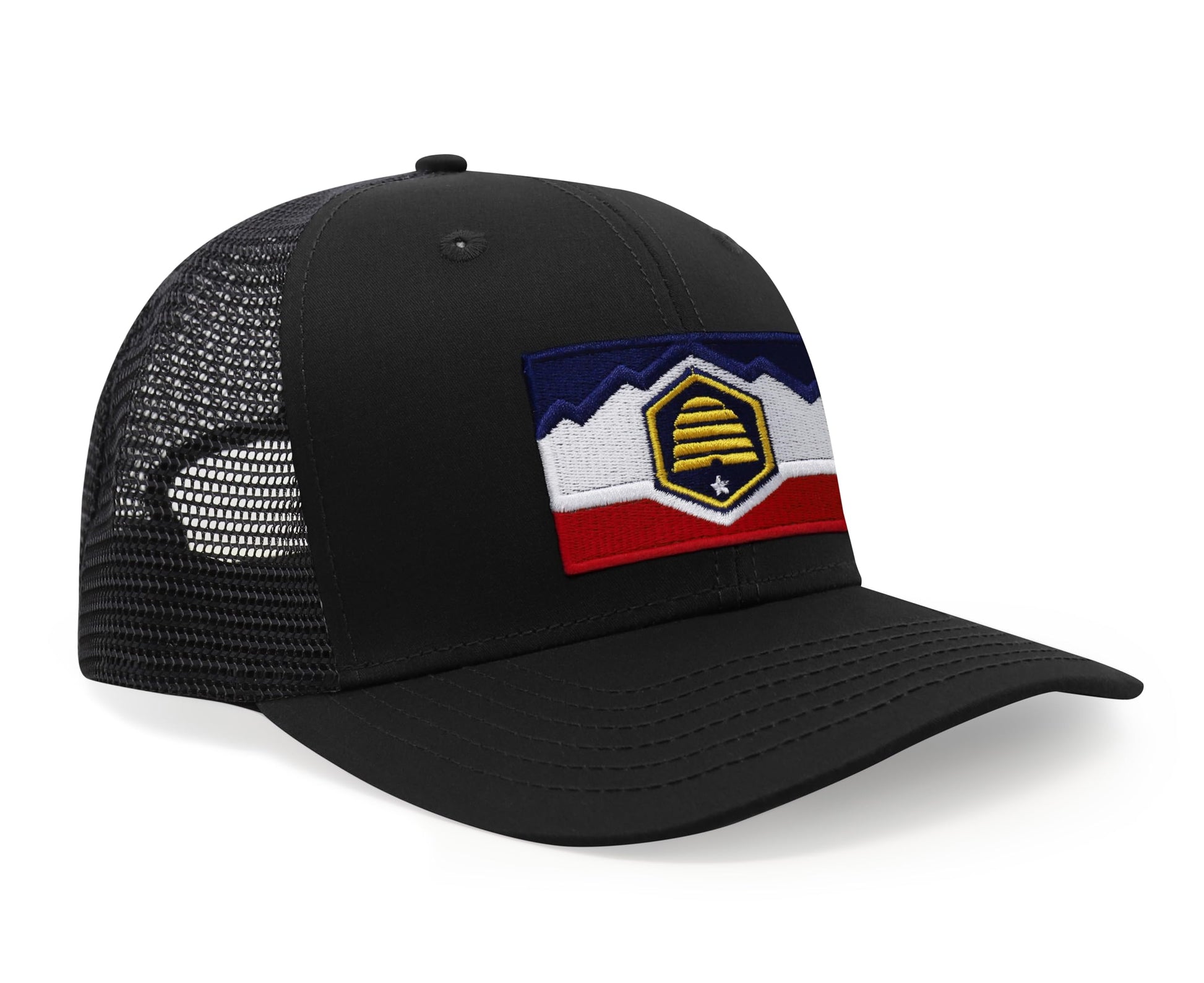International Tie Premium Utah Flag Hat for Men and Women - Snapback Trucker Baseball Cap (All Black)