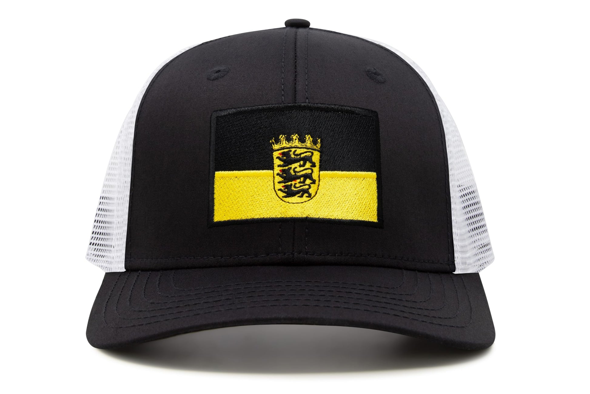 International Tie State Hat for Men and Women, Adjustable Snapback Trucker Baseball Cap with Embroidered Patch (Baden-Wurttemberg, Black White)