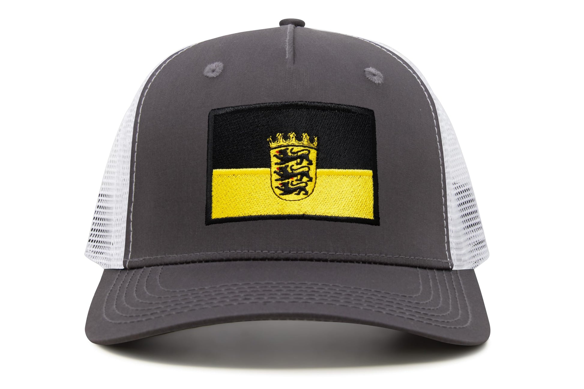 International Tie State Hat for Men and Women, Adjustable Snapback Trucker Baseball Cap with Embroidered Patch (Baden-Wurttemberg, Grey White)