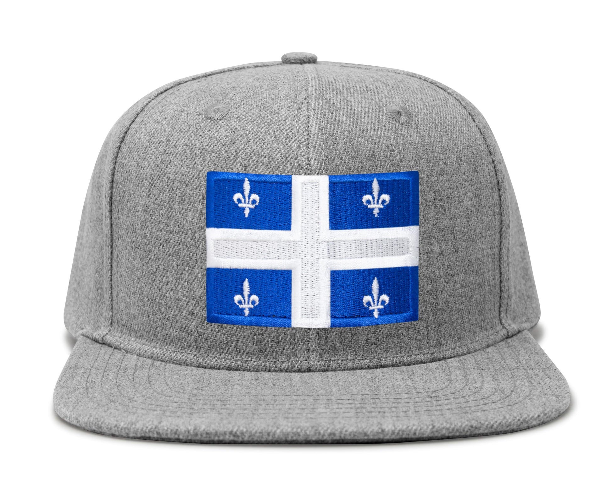 International Tie State Hat for Men and Women, Adjustable Snapback Trucker Baseball Cap with Embroidered Patch (Quebec, Grey Flatbill)