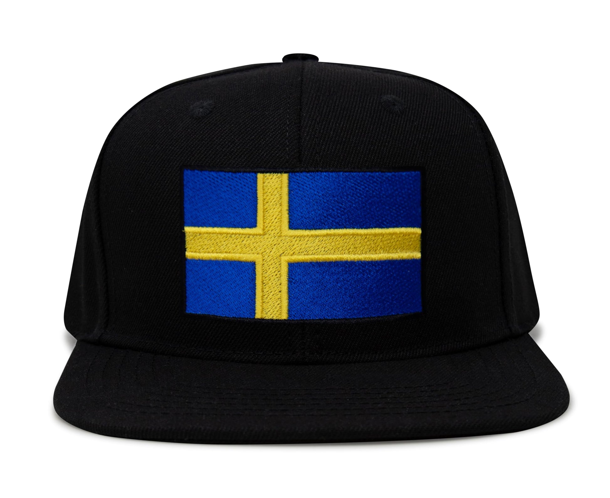 International Tie Swedish Flag Hat for Men and Women - Sweden Snapback Trucker Baseball Cap (Black Flatbill)