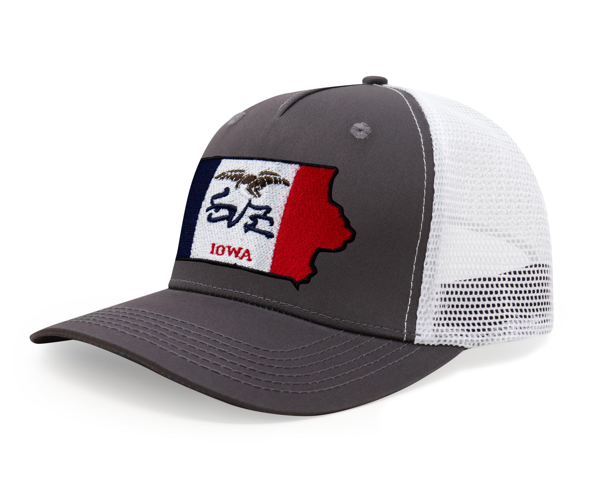 Iowa Flag Hat for Men and Women – Adjustable Snapback Trucker Baseball Cap by International Tie (Grey White)